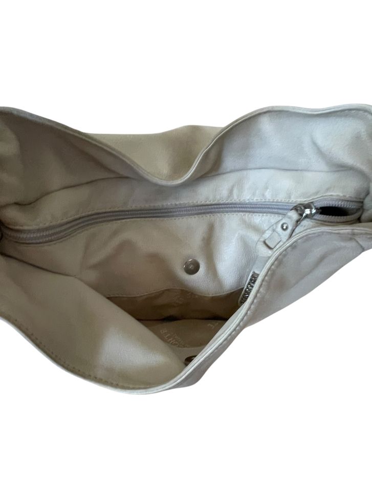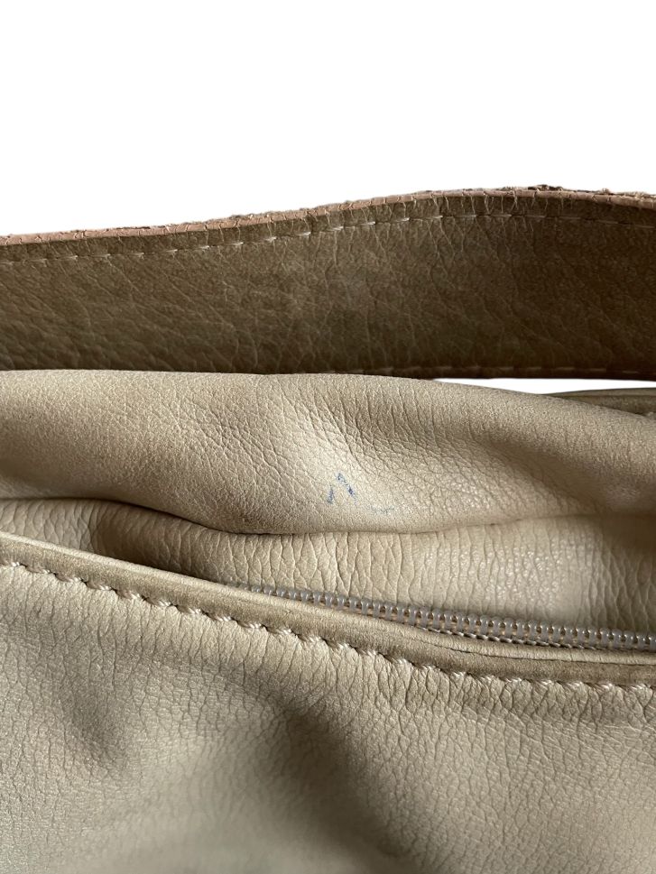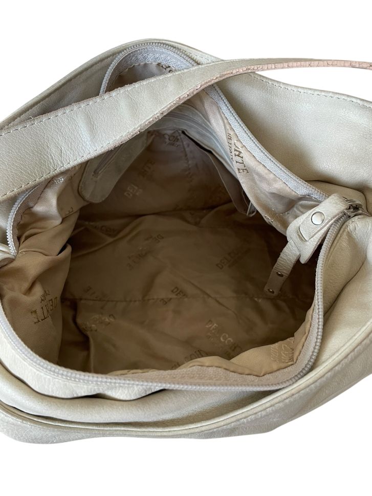 Кожена дамска чанта DEL CONTE. Има леки дефекти/следи от употреба, изобразени са на снимките