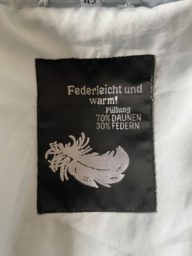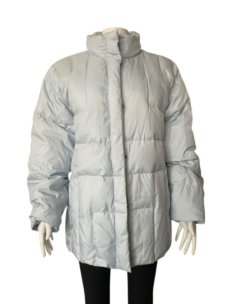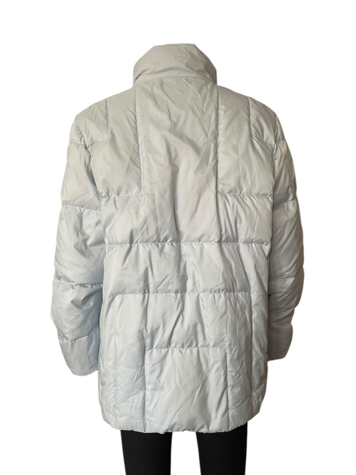 Светло синьо дамско зимно яке с джобове, копчета и цип L