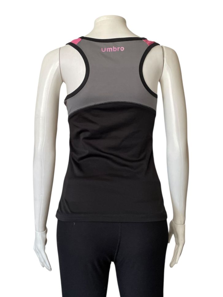 Дамски спортен потник UMBRO S. Гръдната обиколка е 80cm (= XS, според дамските ни размери), но с леко разтягане, роклята отговаря на написания си размер по етикет (90cm = S).