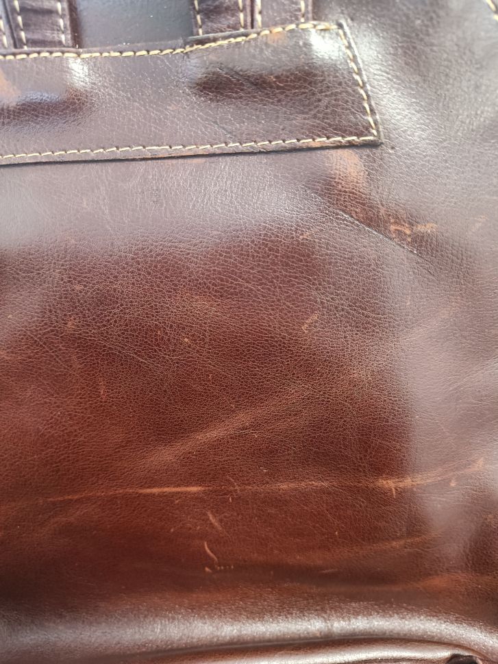 Дамска раница от естествена кожа. Има леки дефекти, изобразени са в снимките