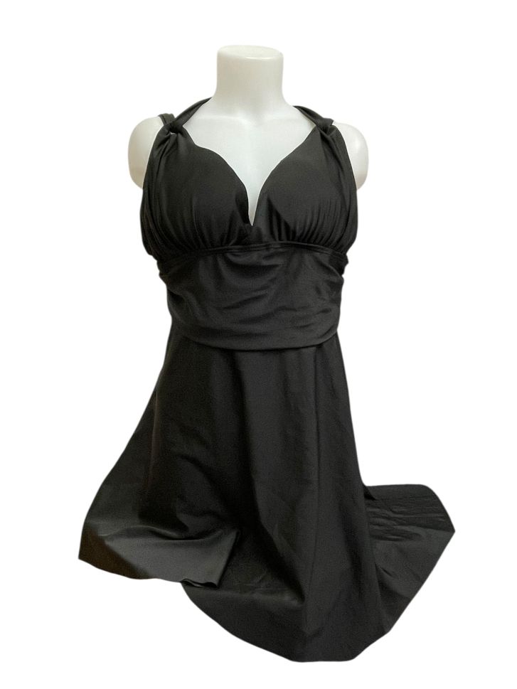 Дамски цял бански 4XL. Има леко разминаване между гръдната обиколка и талията (120cm = 3XL, според дамските ни размери за бански) и размера по етикет (4XL). Препоръчваме ,преди поръчка, да се съобразиш с написаната от нас гръдна обиколка + талия и най-вече с обиколката на бюста/гърдите ти + талия, за да избегнеш разминаване.